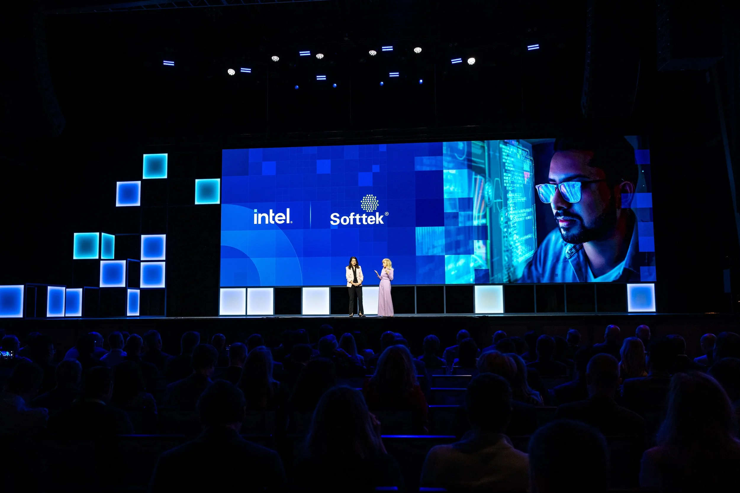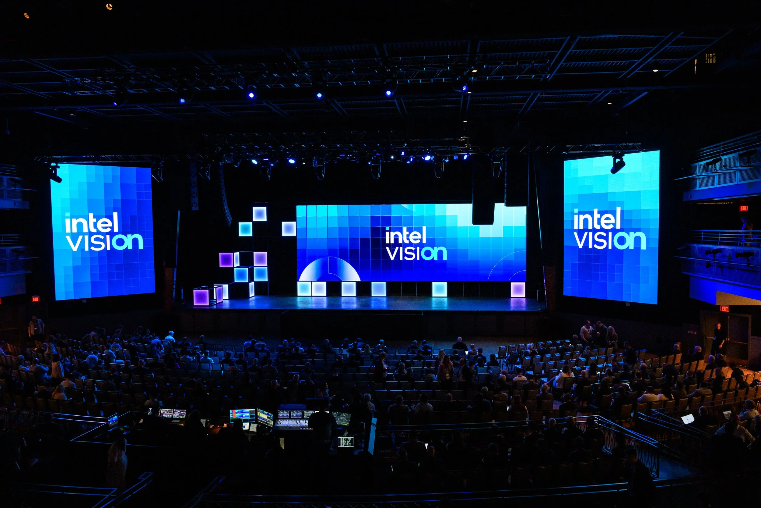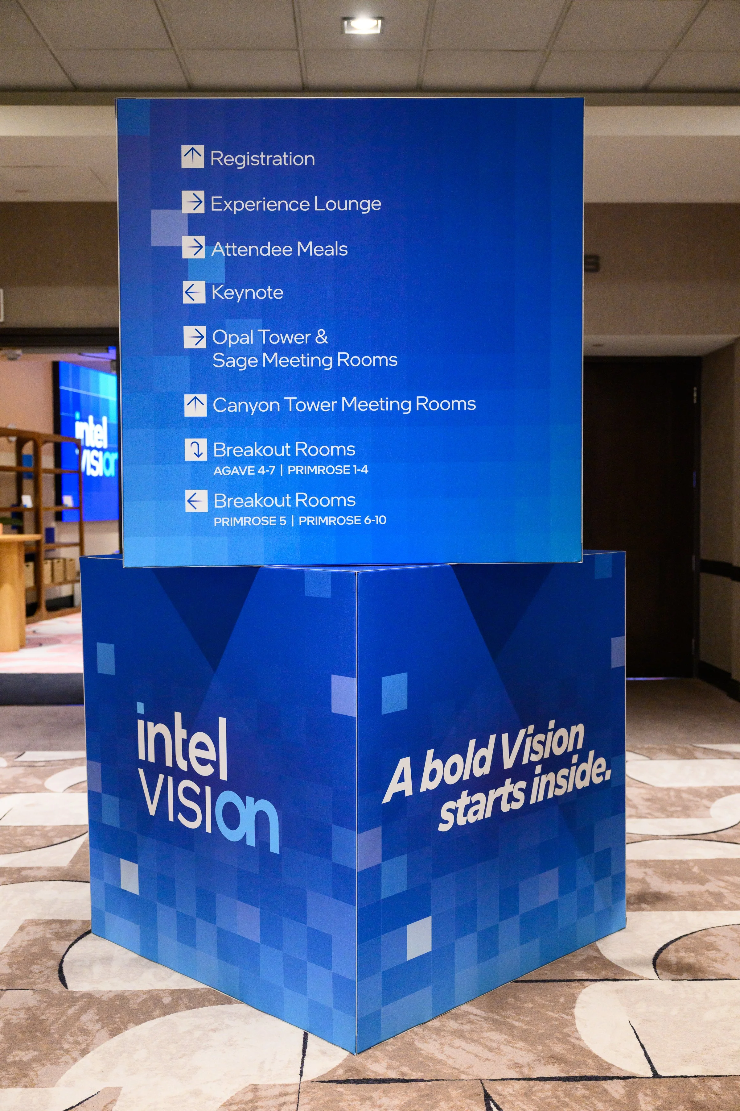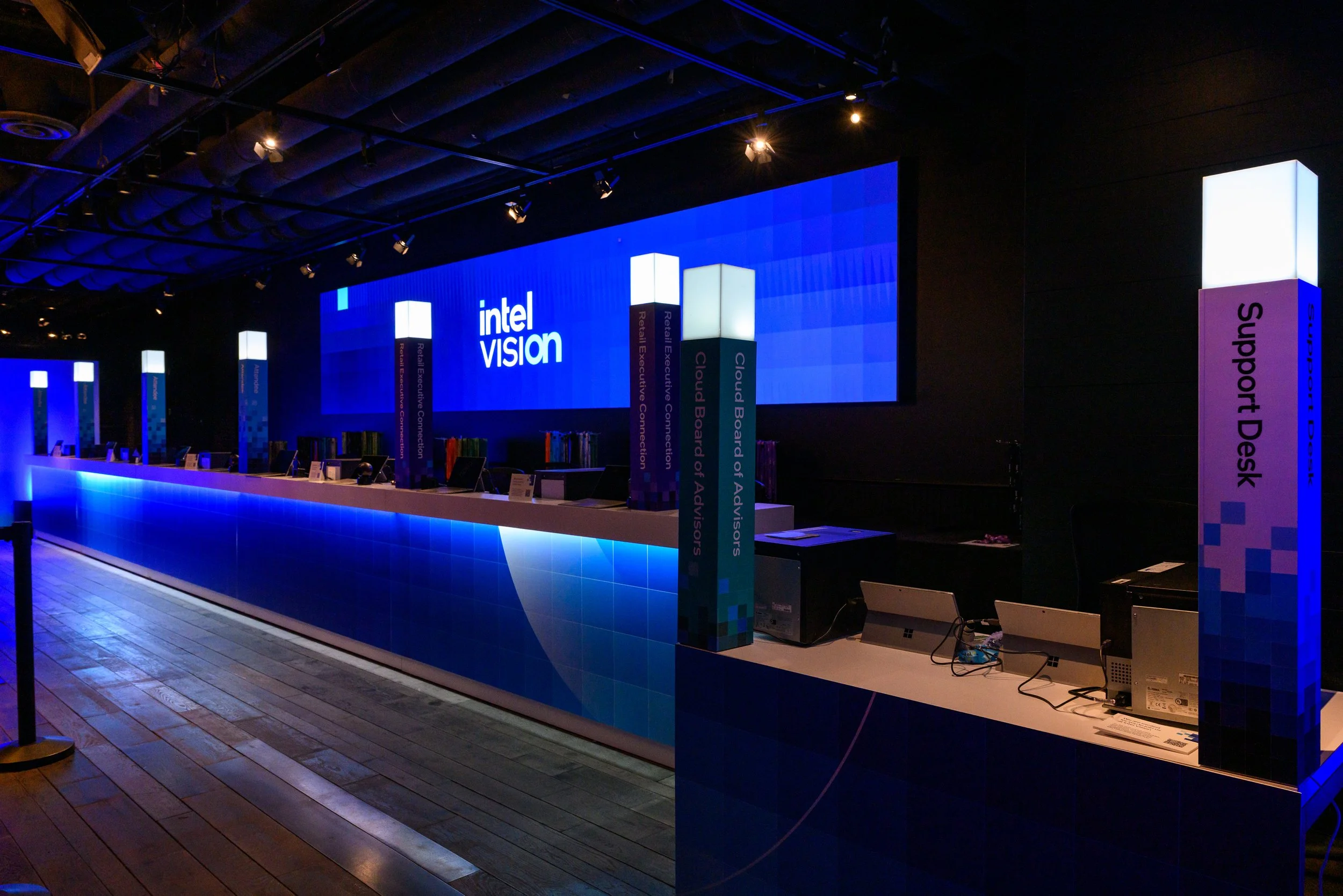 On the cusp of a new brand identity release, Intel sought to bridge their legacy brand with a forward-looking visual language—while also giving their annual Intel Vision event a distinct, ownable identity. The opportunity was to create a cohesive narrative that both honored Intel’s core brand and signaled its evolution. Every element of the experience needed to feel intentional, aligned with the brand’s trajectory, and immersive across both physical and digital environments.