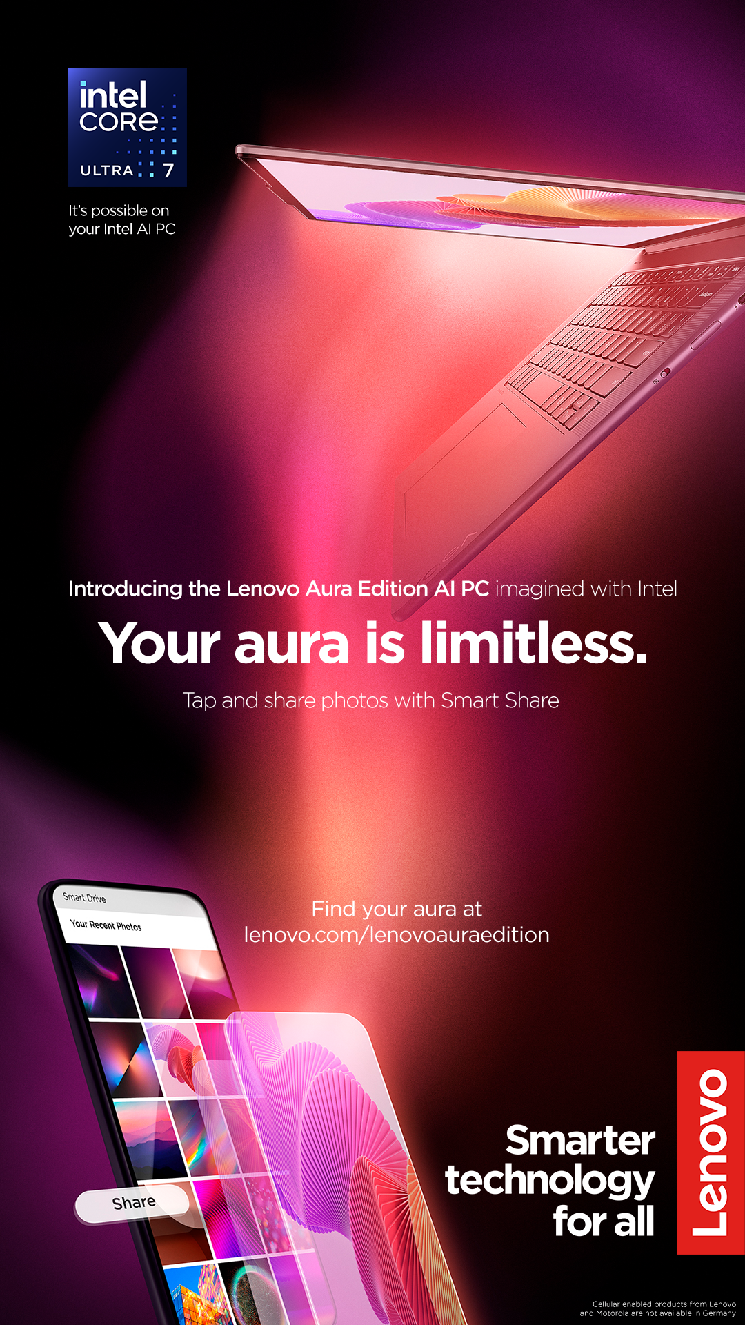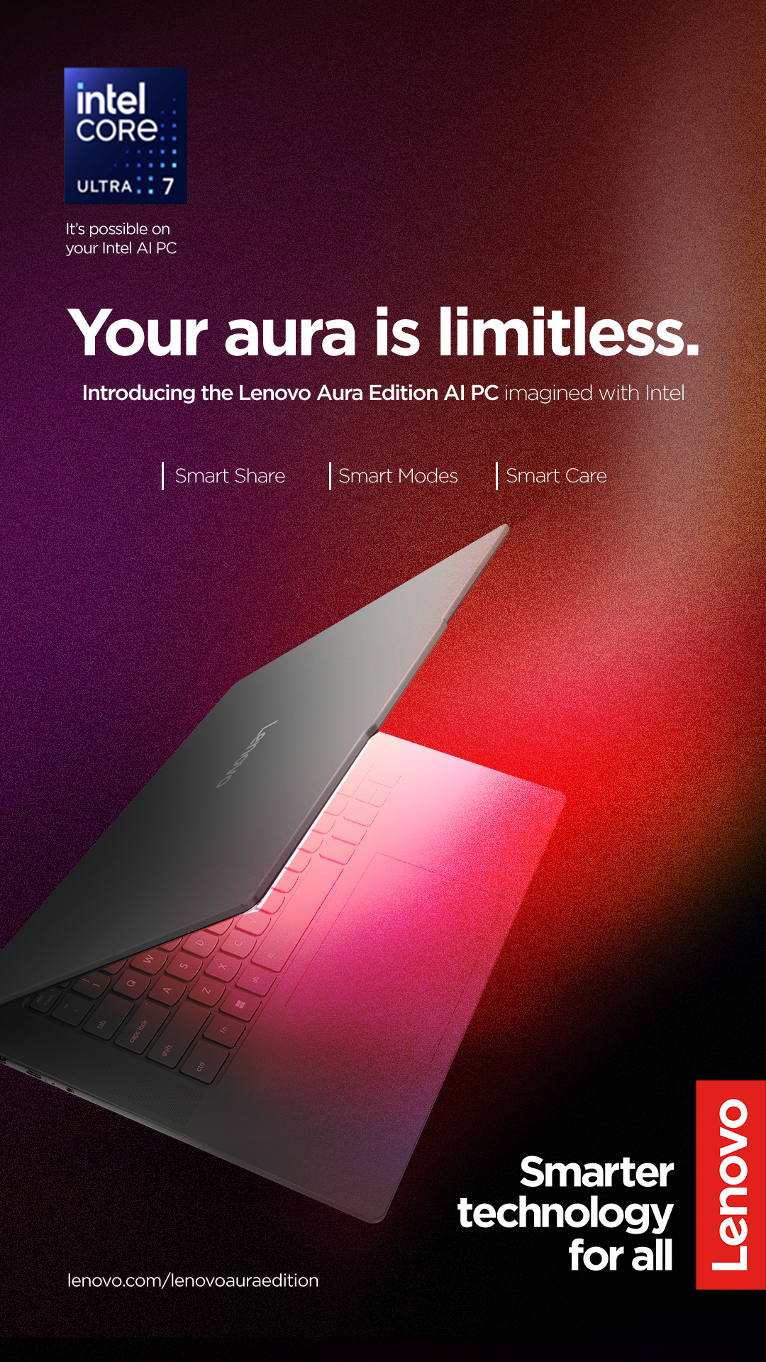 To introduce its new range of PCs, Lenovo launched the "Your Aura is Limitless" campaign—a multi-platform initiative centered on personalization and possibility. The campaign invited users to explore how Lenovo's latest technology could adapt to and enhance their unique lifestyles, whether for creative expression, professional productivity, or immersive entertainment. With customizable performance tools, each product was designed to reflect the user's individuality—bringing their "aura" to life through technology.