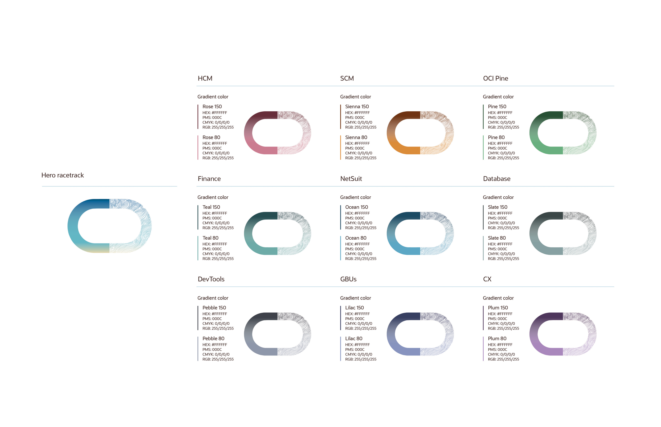 The design system had to work across all of Oracle’s brands and sub-brands to create an easy to navigate colorway for each.